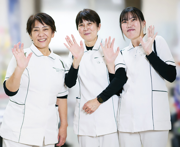 その土台の上で、若い世代や新しく入職した職員がOJTやプリセプター制度などの教育体制の中で学びを深めながら、安心して力を発揮できる環境があります。